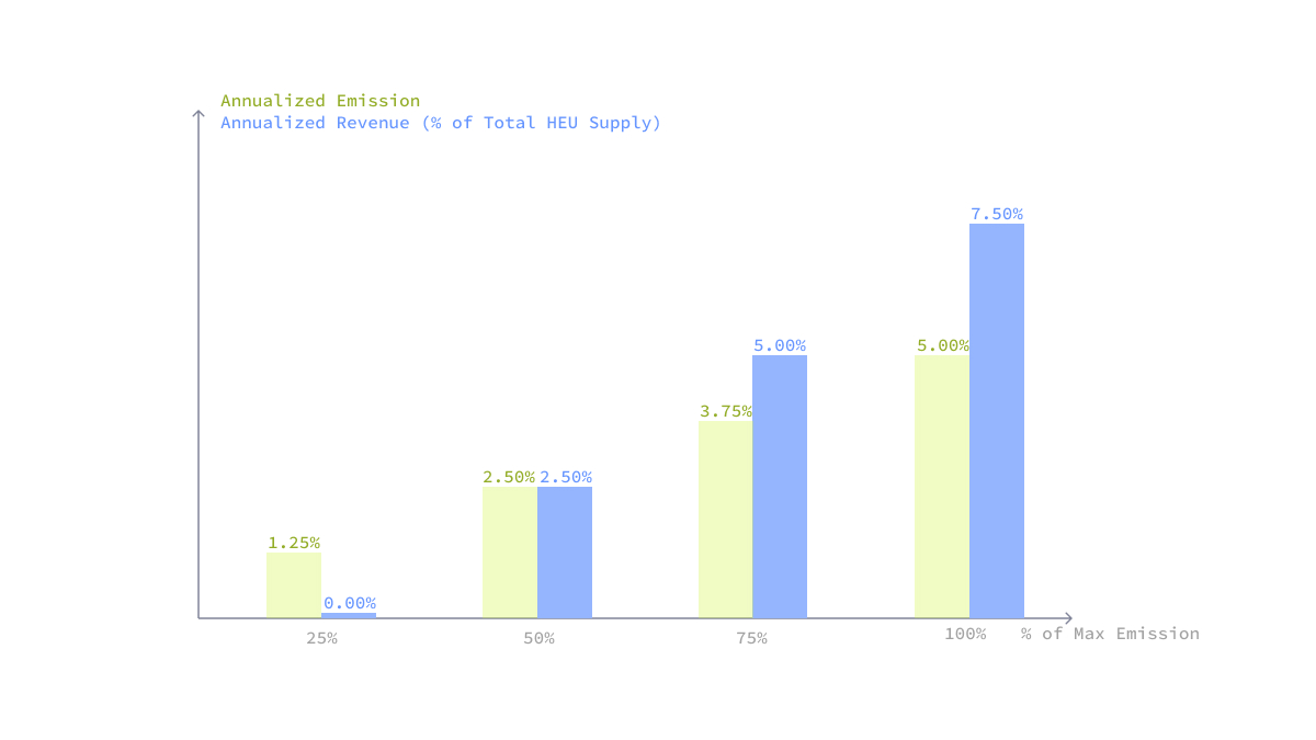 During periods of low demand, the lower emission rate prevents oversupply of resources. As demand increases, the rising emission rate attracts more providers to the network. This dynamic emission mechanism aims to achieve elasticity in both token distribution and compute resource provision by providing a flexible and responsive way to incentivize network participation.